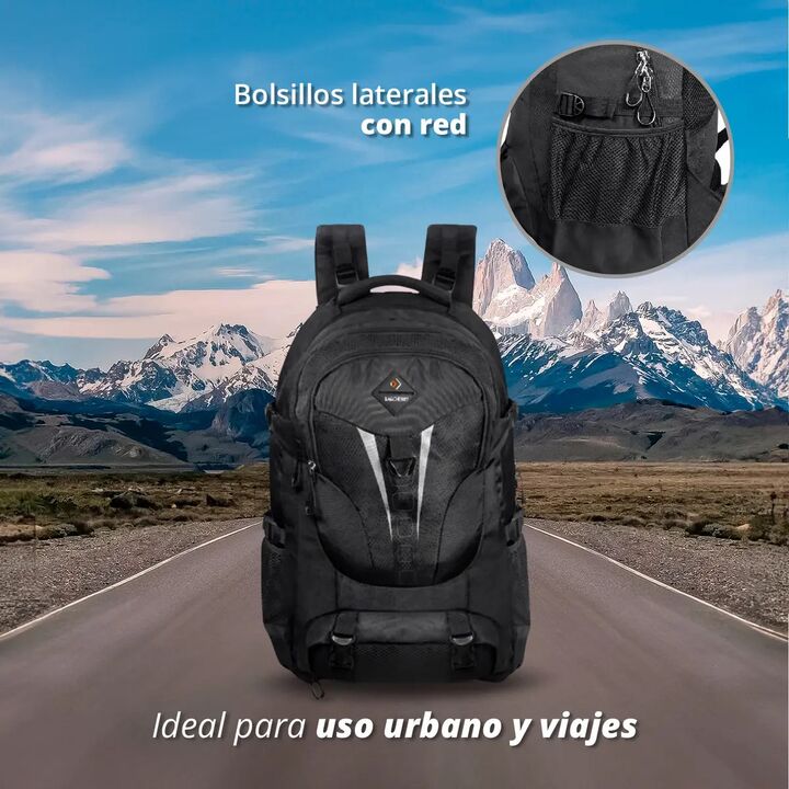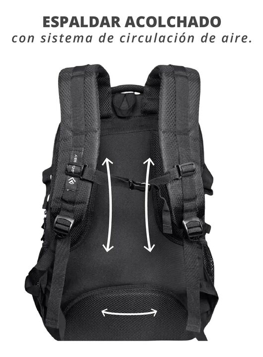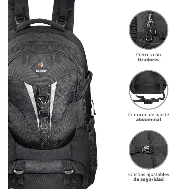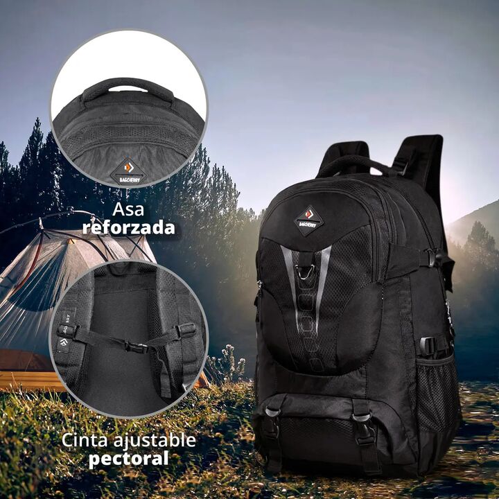 MOCHILA CAMPING BAGCHERRY GRANDE 50 LITROS . Capacidad: 50 litros . Diseño Super Ligero . Ajuste abdominal y ajuste pectoral . 3 Prácticos compartimientos frontales . Cierres con tiradores doble Abertura en el compartimiento principal . Espaldar Acolchado en hombros y cintura . Tiras Ajustables . Tr...