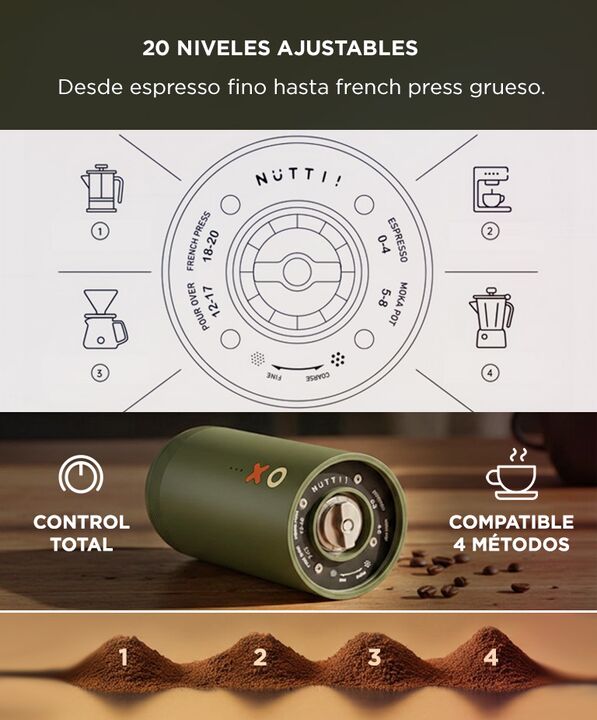 Molienda uniforme que mejora el sabor: El Molinillo de Café Eléctrico Nuttii x Timemore incorpora muelas cónicas de acero inoxidable diseñadas para ofrecer una molienda más precisa y homogénea. Este mecanismo reduce la fricción excesiva y evita cortes irregulares, permitiendo conservar mejor los ace...