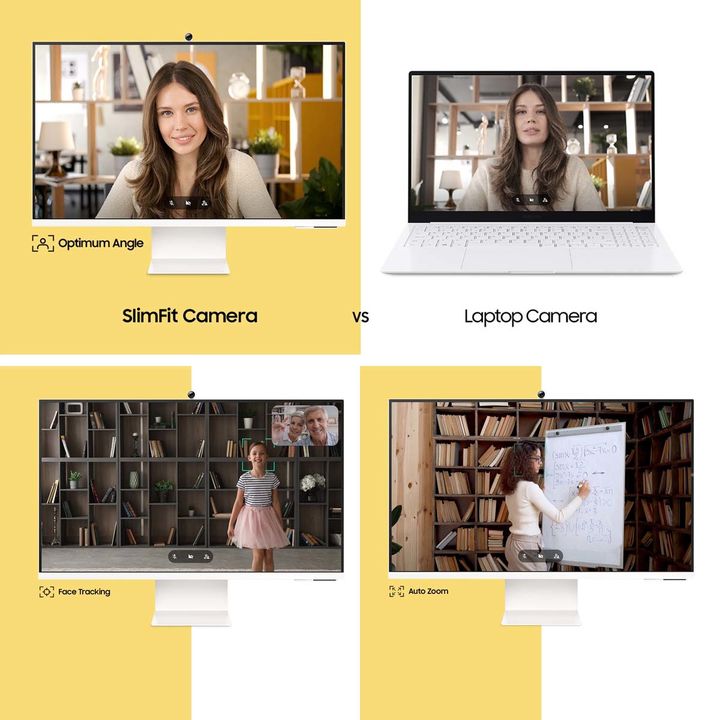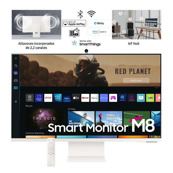 SLIM DESIGN | CÁMARA SLIMFIT FULL HD | PANEL VA | PARLANTES INCORPORADOS | 4K UHD | HDR 10+ | 60 HZ | 4MS GTG | TIZEN OS | APPS | WIFI | BLUETOOTH | IOT HUB | SAMSUNG DEX MIRÁ, JUGÁ Y VIVÍ CON ESTILO Todo lo que necesitás está en tu Monitor. Mirá contenido, trabajá y chateá, todo sin conectar una PC...