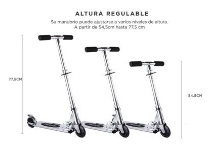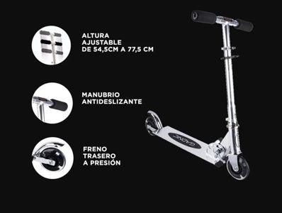 Diseñado para niños a partir de 4 años, este monopatín soporta hasta 60 kg y cuenta con un manubrio ajustable que se extiende hasta 77,5 cm. Sus manijas antideslizantes y el sistema reforzado garantizan una experiencia segura. Equipado con ruedas de PU (silicona) lisas y silenciosas, y rodamientos d...