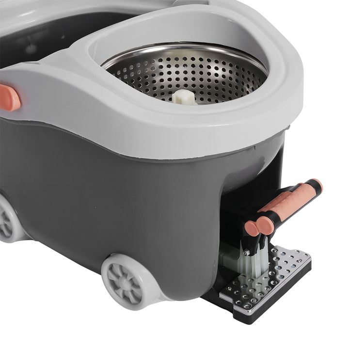 Mopa Centrifuga Con Ruedas y Pedal Proline MPCHLVA01PI Caracteristicas: Drenaje práctico • Escurrido de forma manual o con el pedal • Nuevo diseño con cesta de acero inoxidable de rotación. • Escurrido fácil, sin ensuciarse las manos • Manija para fácil transporte • Mopa de microfibra • Base con ABS...