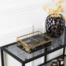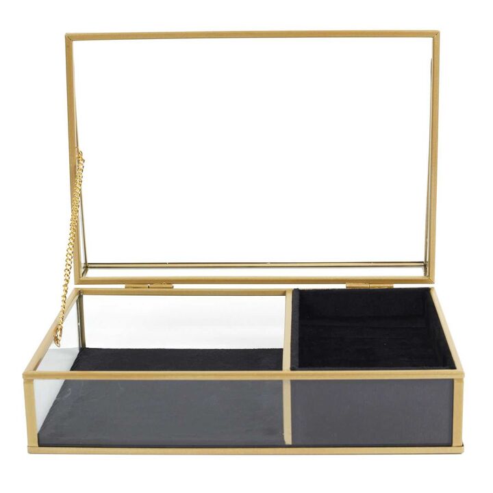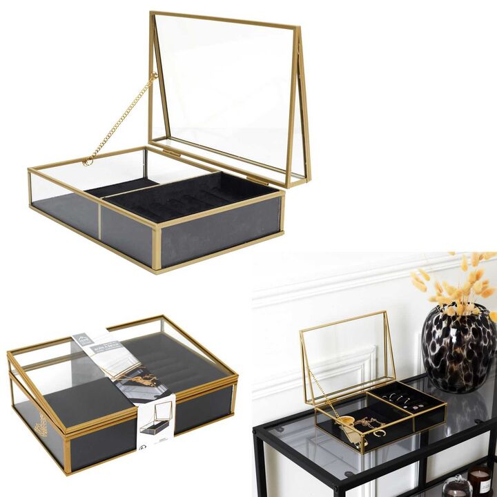 Organizador De Joyas De Vidrio y Terciopelo Negro HD0095 Caracteristicas: Largo del Producto (cm): 23 Altura del Producto (cm): 8 Profundidad del Producto (cm): 16 Peso del Producto (gr): 850 Composición 1: Vidrio - GLASS (50%) Composición 2: Metal - Hierro (50%) Garantia: 6 Meses La presente public...