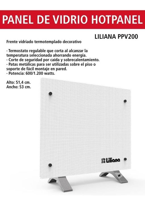Frente de vidrio termotemplado decorativo. Termostato regulable que ahorra energia. Patas metalicas para ser utilizado sobre el piso o soporte de facil montaje en pared. Gran conveccion natural de calor.Totalmente seguro. No consume oxigeno. Corte de seguridad por caida y sobrecalentamiento. Potenci...