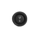 Parlante compacto con sonido potente JBL, diseño portátil y resistencia al agua y polvo, ideal para uso en exteriores.