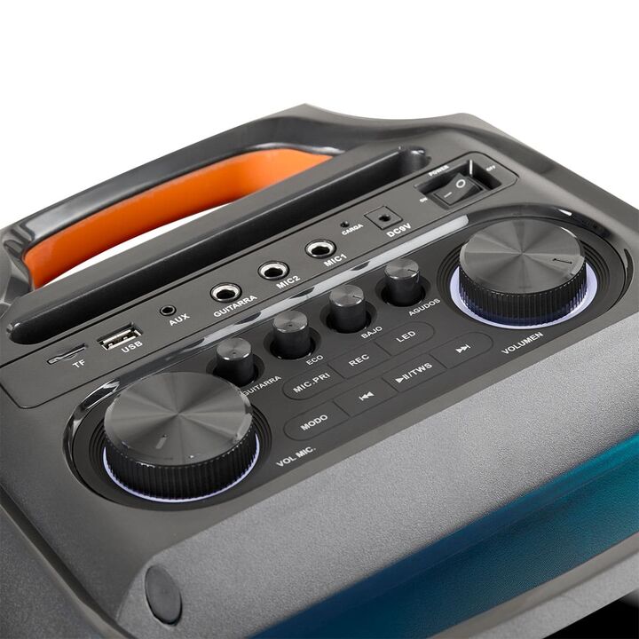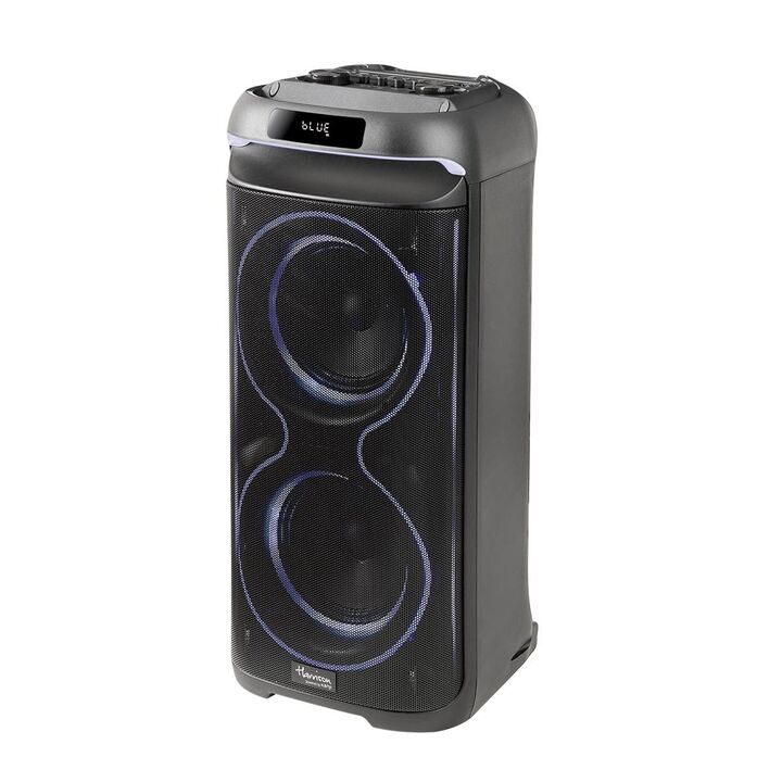 Parlante Portátil Harrison REGGAE: ¡Doble Woofer, 7200W y Luces LED para un Sonido Contundente!