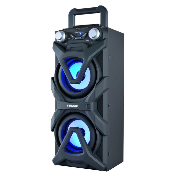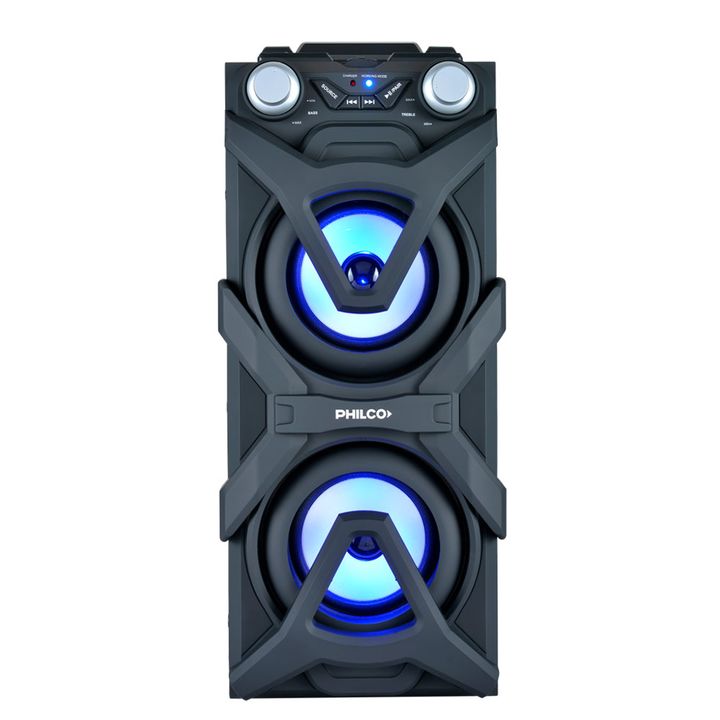 Parlante Portátil Philco 94DJP10P Estilo Fiesta CARACTERÍSTICAS • Conexión inalámbrica Bluetooth • Potencia 500 W • Entrada Auxiliar Mini plug 3,5 mm • Batería Interna Recargable • Ecualización BASS & TREBLE • Radio Fm • Doble Woofer • Flash light -Iluminación estilo fiesta • Peso: 1,77 kg • Dimensi...