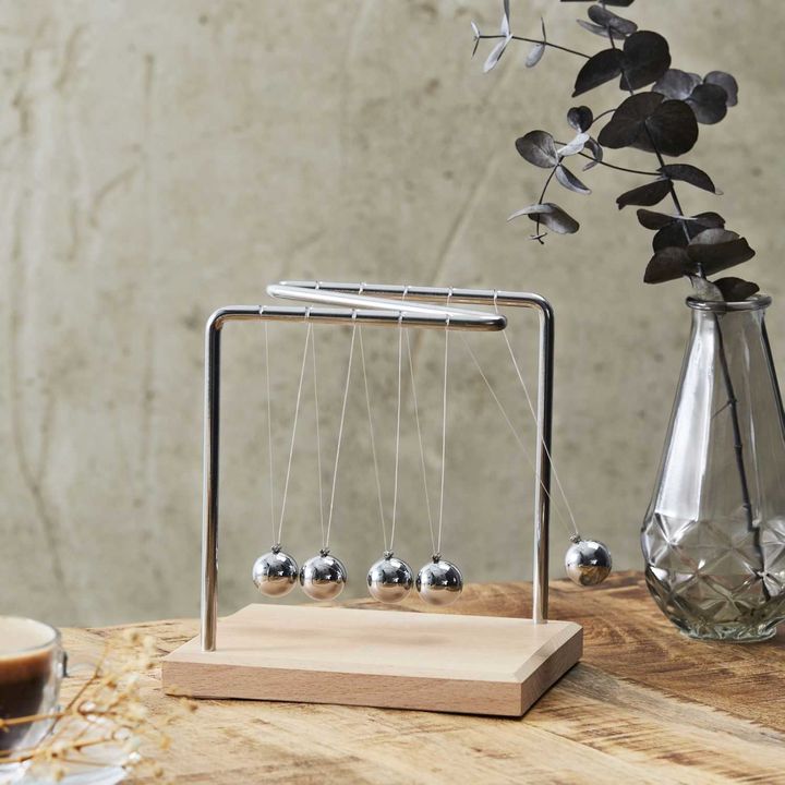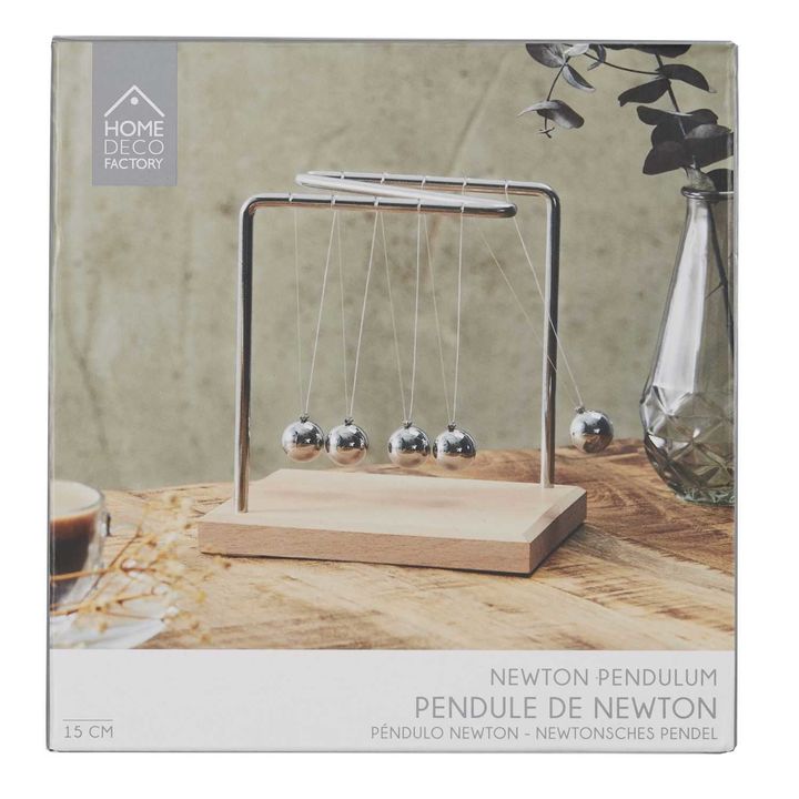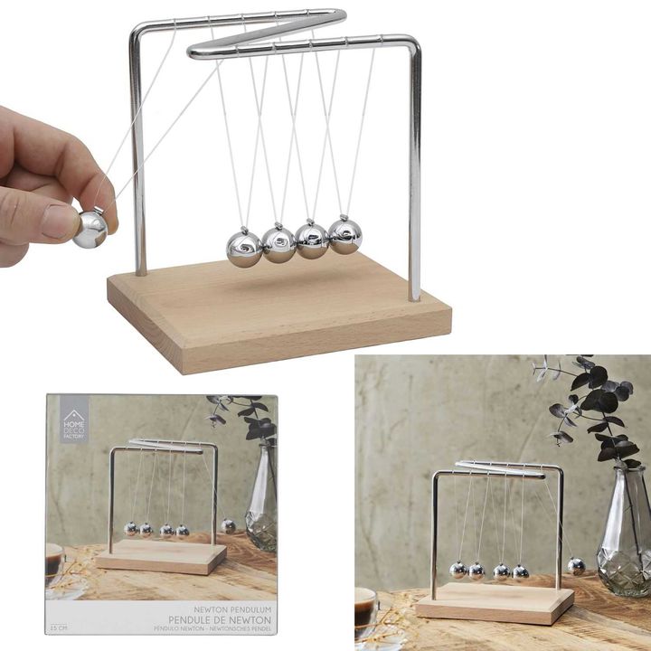 Péndulo de Newton Decoración HD0378 Caracteristicas: Largo del Producto (cm): 14 Altura del Producto (cm): 15 Profundidad del Producto (cm): 11 Peso del Producto (gr): 440 Composición 1: Metal - Hierro (60%) Composición 2: Madera - Haya (40%) Garantia: 6 Meses La presente publicación está destinada ...