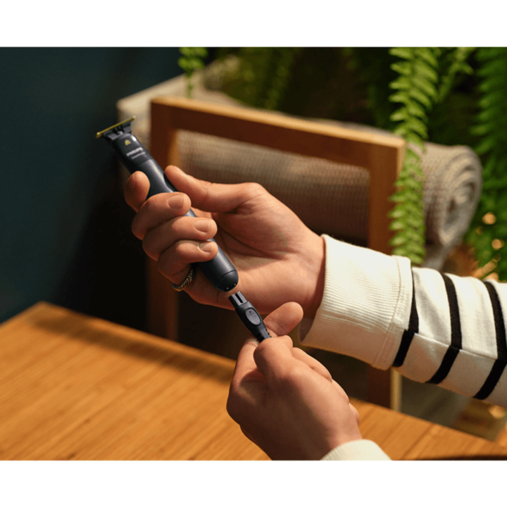 Philips OneBlade es un nuevo y revolucionario moldeador híbrido que puede recortar, afeitar y crear líneas y perfiles limpios en vellos de cualquier longitud. Olvídese de tener que seguir múltiples pasos y utilizar muchas herramientas. OneBlade lo hace todo. Philips OneBlade cuenta con una tecnologí...