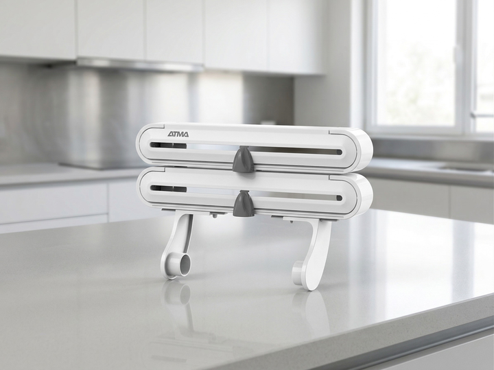 Porta Rollo Cocina 3 en 1 Atma Papel Film Aluminio AAPR115P El Porta Rollo Atma Home 3 en 1 es una solución práctica para organizar y dispensar rollos de cocina, papel film y papel aluminio en un solo lugar. Su diseño funcional facilita el uso diario y mantiene la cocina ordenada. Características • ...