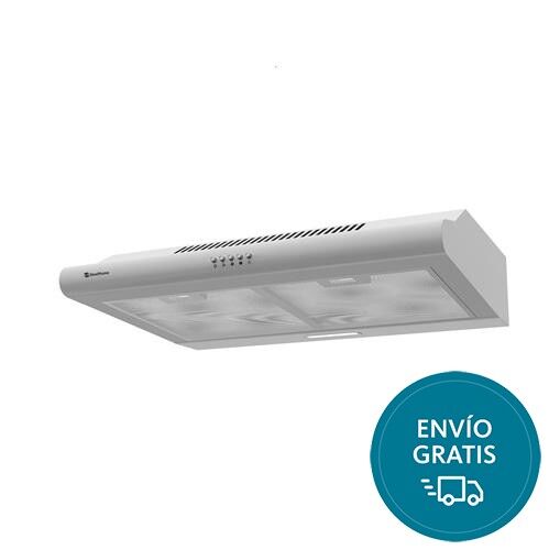 Extractor de cocina Steel Home SH-E1200B con salida al exterior con opcion a sin salida Cuerpo pintado blanco de 60 cm de Ancho Dos motores de 100w 3 velocidades Filtro de aluminio de tres capas. <li>Medidas 60cm de ancho x 13.8cm de alto x 50cm de prof <li>2 Filtros de grasa de aluminio <li>Luz <l...