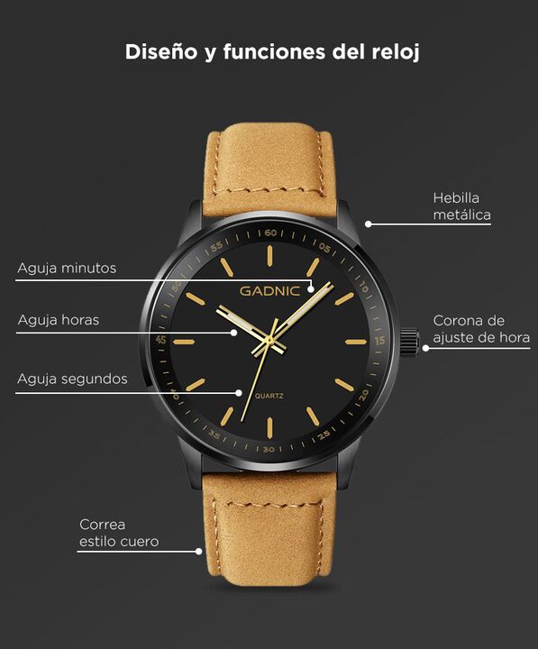 Diseño elegante para cualquier ocasión: El reloj analógico Gadnic RELF1 combina una estética minimalista con detalles dorados que brindan un estilo sofisticado. Su diseño versátil lo convierte en un accesorio ideal tanto para uso diario como para ocasiones formales. Movimiento Quartz preciso: El mec...