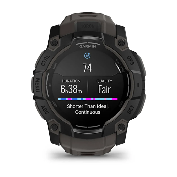 Smartwatch resistente con GPS y pantalla AMOLED. SIGUE EL TUYO INSTINCT® 3 NO TEMAS Bisel reforzado con metal TUS GUSTOS, TUS COLORES Pantalla AMOLED brillante y vibrante ACÉPTATE. CONÓCETE. Monitoreo constante de la salud y el bienestar ILUMINA LINTERNA INCORPORADA AVANZA CON DETERMINACIÓN GPS mult...