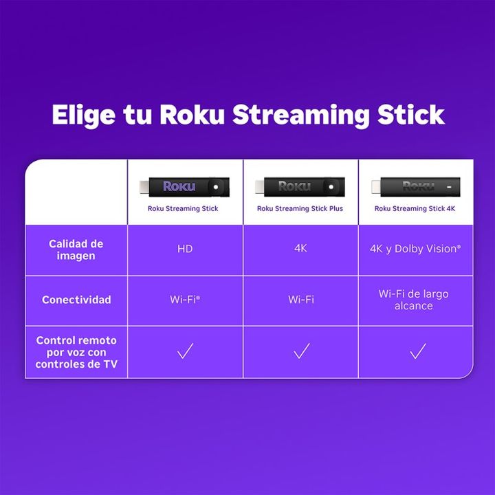 Roku Streaming StickT Plus 3830MX 2025 - Dispositivo de streaming 4K y HDR para TV con control por voz con TV en vivo y gratis. -Compatibilidad de imagen con TV: TVs HD: Hasta 1080p (1920 x 1080) con ampliación desde 720p TVs 4K: Hasta 2160p a 60 FPS (3840 x 2160) con ampliación desde 720p y 1080p T...