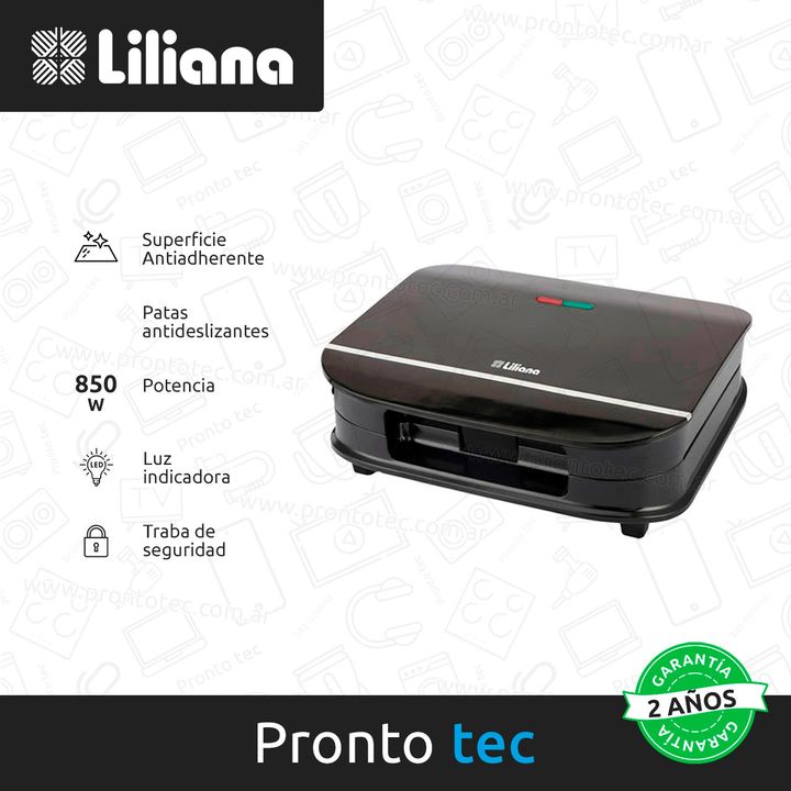 La sandwichera eléctrica Grilltoast de Liliana tiene un diseño moderno y compacto. La superficie antiadherente evita que los alimentos se peguen y se rompan, y gracias a las placas extra grandes podes usar prácticamente cualquier tipo de pan. Con cierre hermético de seguridad y luz indicadora, y pla...