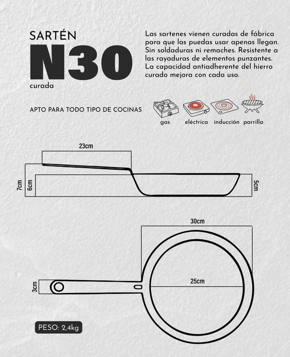 Como el hierro fundido pero mejor. Nuestra sarten de acero al carbono mas vendida ahora viene CURADA para que una vez que te llegue la laves y empieces a usar. -100% de hierro -Fabricada en Argentina -Control superior de temperatura -Naturalmente antiadherente -Compatible con cocinas a gas electrica...