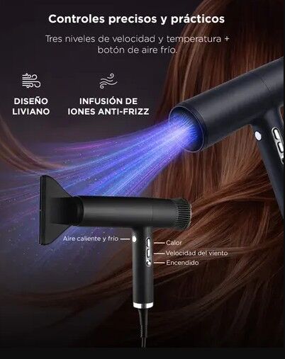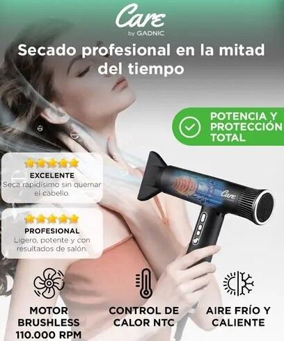 Secador de Pelo Profesional Ionico Gadnic Brushless 1600W 110000 RPM 3 Velocidades 3 Temperaturas Anti Frizz
