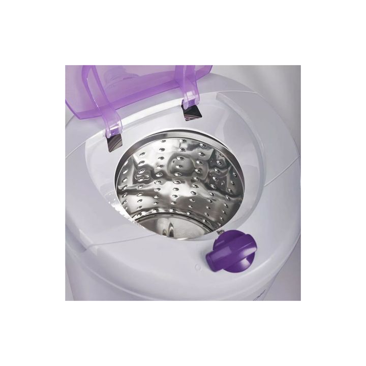 - La tapa abre sola cuando el tambor deja de girar
