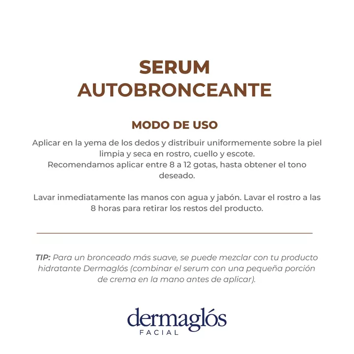 Bronceado saludable en una sola aplicación Tono uniforme, natural y luminoso. De texturaliviana y rápida absorción. Reduce signos de fatiga y estimula la producción de colágeno, aumentando la firmeza de la piel dejándola suave y saludable. Hipoalergénico –Apto piel sensible –Testeado dermatológica y...