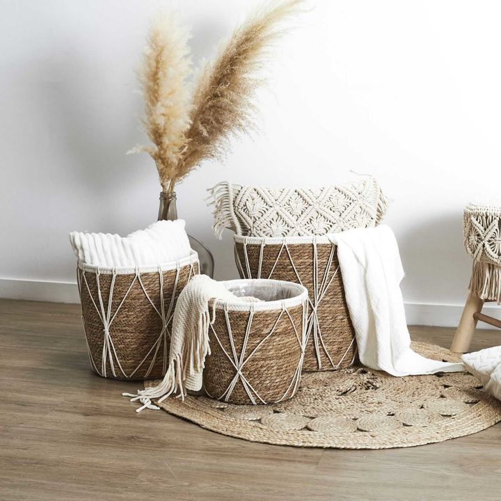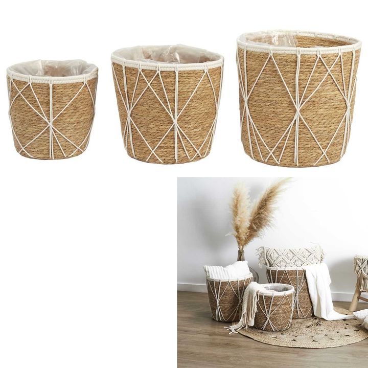 Set De Canastos Organizadores x3 RG0024 Caracteristicas: Dimensiones Aproximadas (cm): 35 (Largo) x 35 (Alto) x 35 (Profundidad) Composición: Vegetal - Junco (Cattail Grass), Textil - Poliéster, Plástico - PE Peso del Producto (GR): 1380 Garantia: 6 Meses La presente publicación está destinada única...