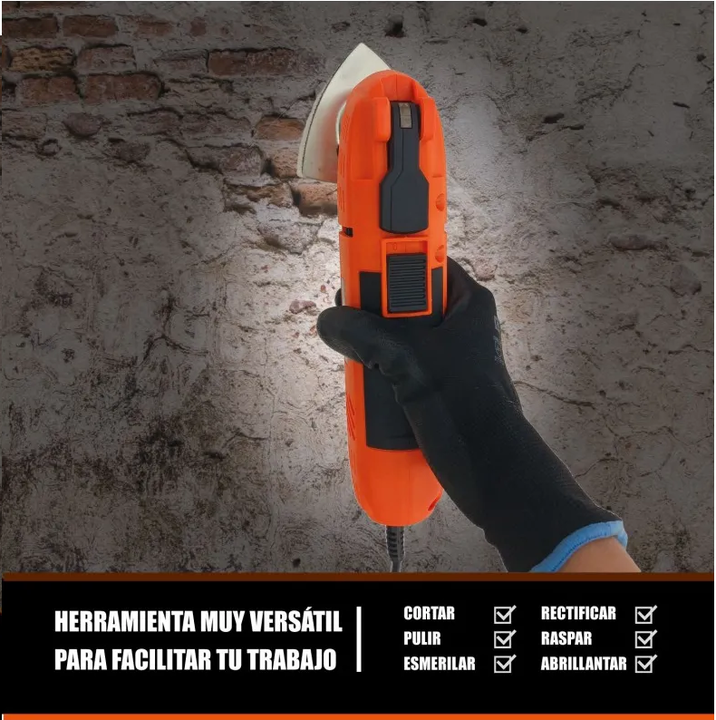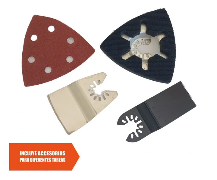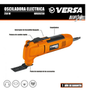 SIERRA MULTICORTADORA OSCILANTE VERSA 250W ELECTRICA + ACCESORIOS Herramienta multifunción diseñada para realizar tareas de corte, desbaste y lijado en aplicaciones de terminación. Su formato compacto permite trabajar en zonas de difícil acceso, lo que la convierte en una opción práctica para manten...
