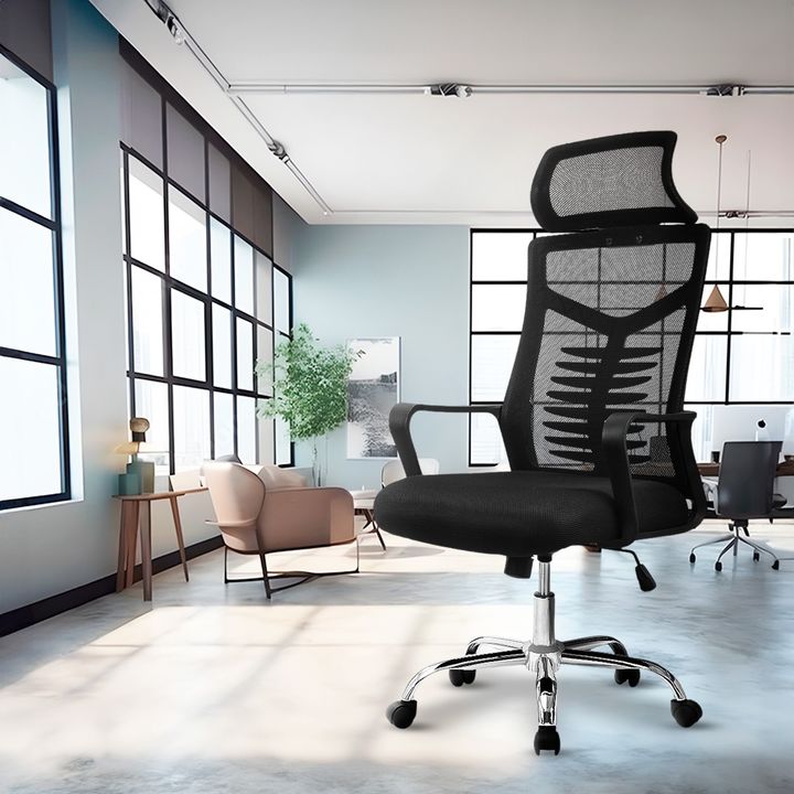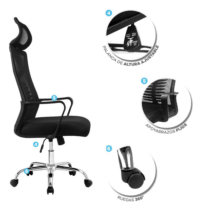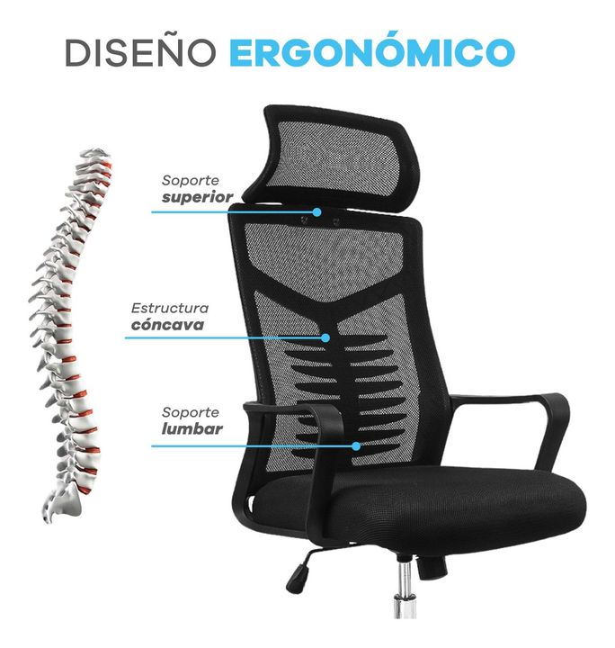 SILLA DE OFICINA ERGONÓMICA CON APOYACABEZA BENEFICIOS * Recomendada para quienes trabajan varias horas frente a una computadora. * Espaldar ergonómico y con un soporte lumbar fijo que, junto con los apoyabrazos, te ayudarán a mantener una buena postura. * Asiento acolchado y transpirable para que s...