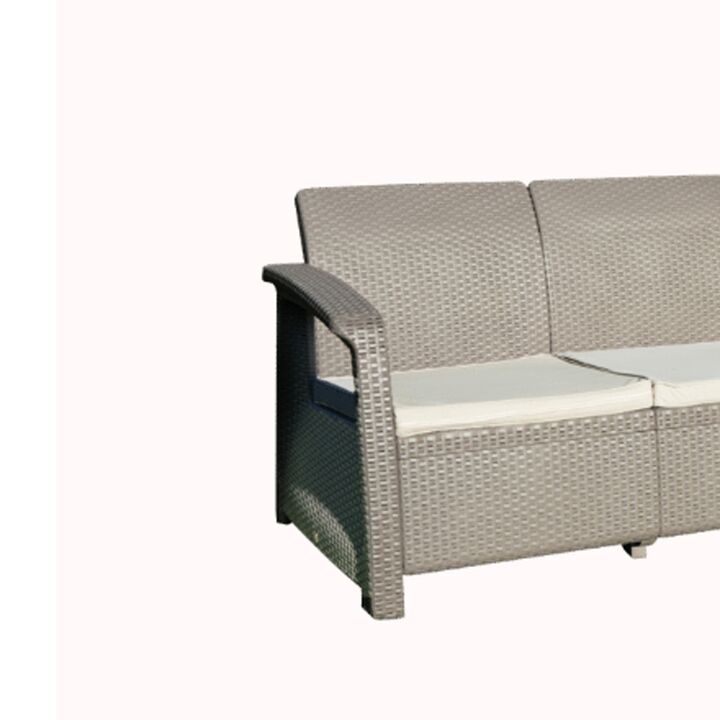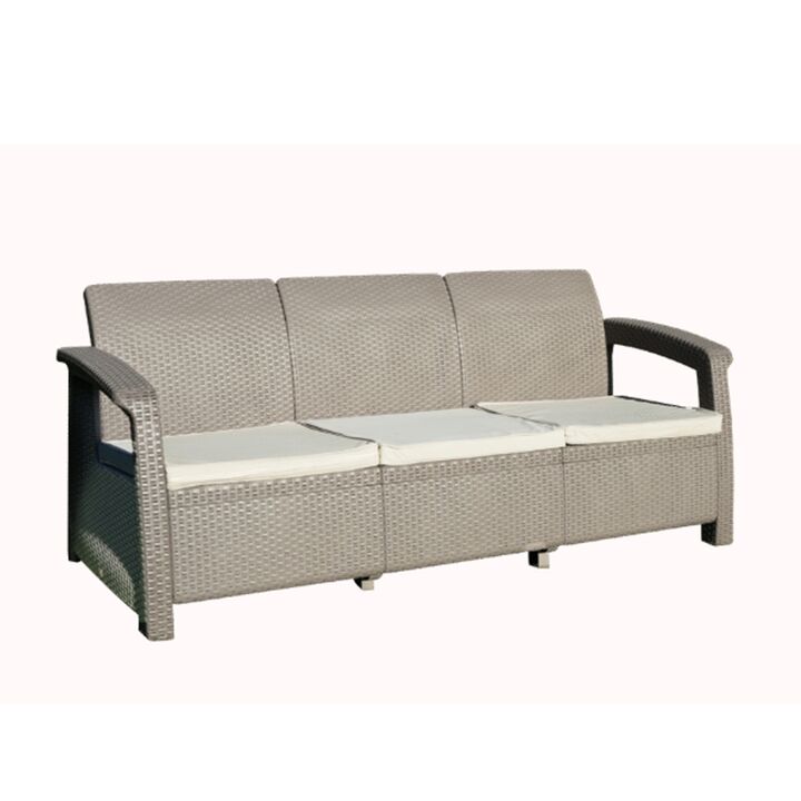 Con una atractiva textura ratán y un diseño sumamente confortable, este juego está fabricado con materiales de la más alta calidad que aseguran una gran durabilidad y resistencia a las inclemencias del tiempo. No requiere mantenimiento. Alto: 79 cm Ancho: 181.5 Profundidad: 71.5 cm Peso soportado po...