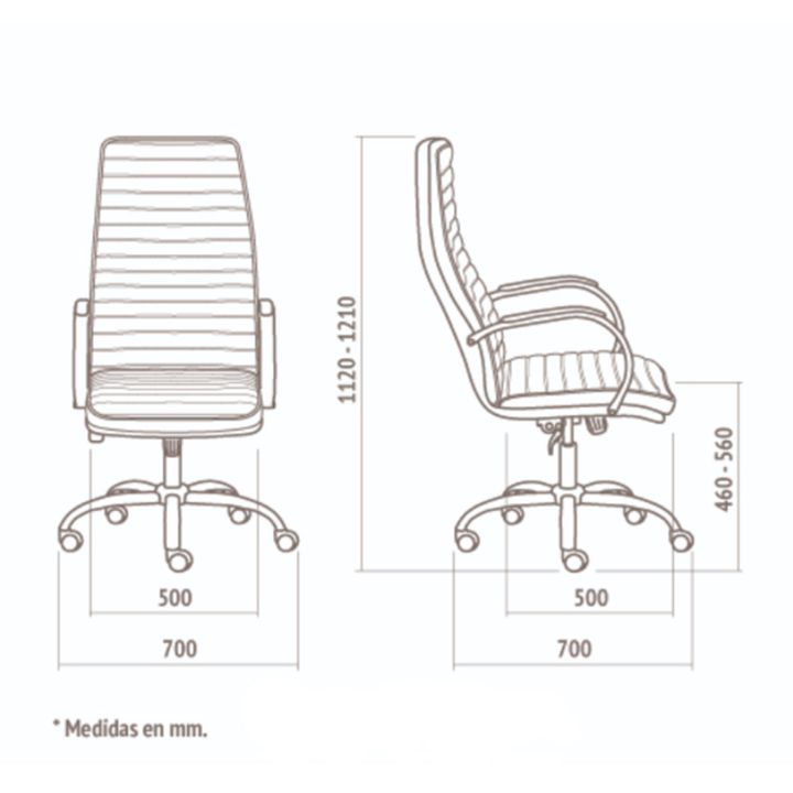 Sillón de Oficina estilo Gerencial. Sofisticado y elegante. Motiva un espacio positivo. Tapizado exclusivamente en Aymara costurado Negro. Espuma de alta densidad. Base y apoyabrazos cromados. Sistema basculante con múltiples posiciones de bloqueo. Regulación neumática de altura del asiento. Base cr...