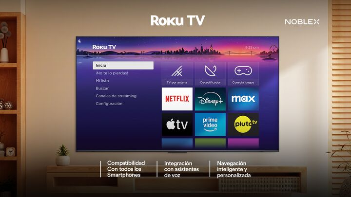 SMART TV 43 NOBLEX - ROKU Características principales: Resolución Full HD | Excelente calidad de imagen Disfrutá de imágenes claras y definidas con resolución Full HD (1920 x 1080), ideal para todo tipo de contenido. Android TV | Más contenido y aplicaciones Accedé a miles de aplicaciones desde Goog...