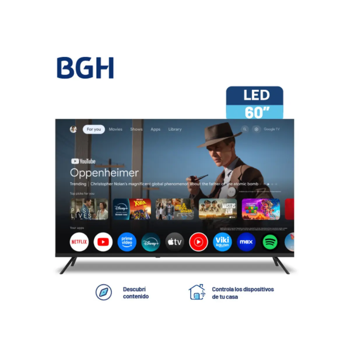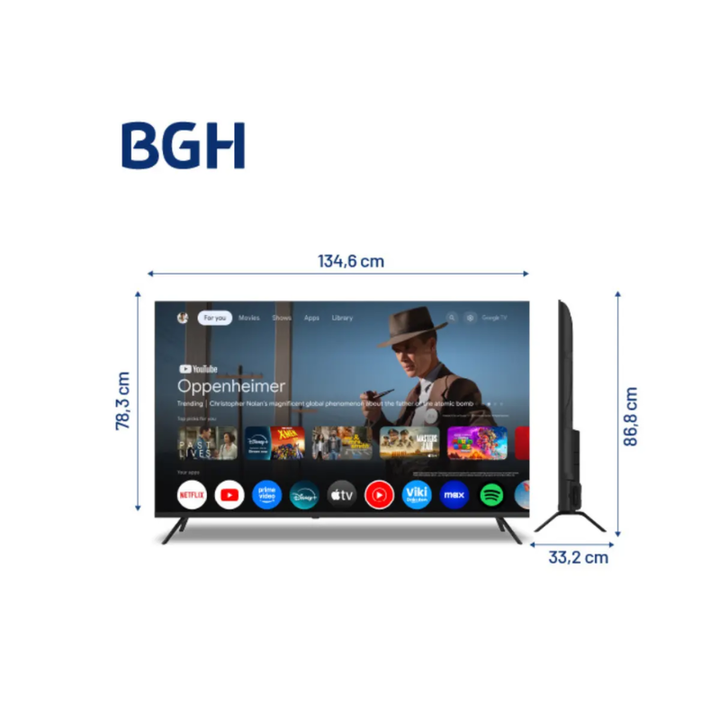 La Smart TV BGH de 60 pulgadas es el compañero perfecto para disfrutar de tus contenidos favoritos con una calidad de imagen impresionante y funciones inteligentes avanzadas. Con una resolución 4K UHD (3840 × 2160), esta TV ofrece detalles nítidos, colores vibrantes y contraste mejorado para películ...