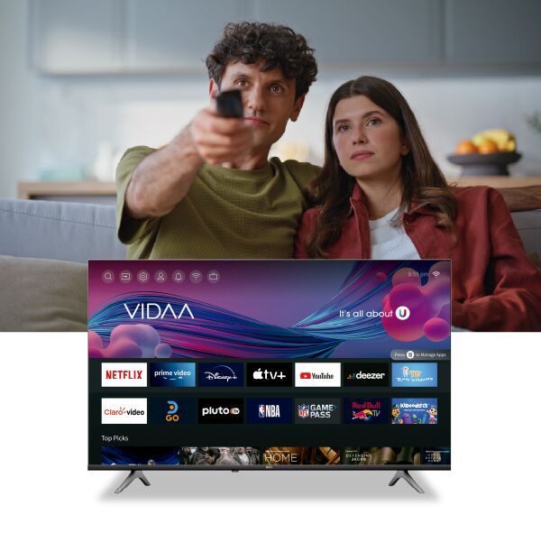 Smart TV VIDAA U6 – Full HD Frameless Una experiencia más amigable e intuitiva Con VIDAA U6, disfrutá de una interfaz personalizable, rápida y sencilla, pensada para que encuentres tus aplicaciones y contenidos favoritos fácilmente. Todo el entretenimiento en un solo lugar Accedé a Netflix, Prime Vi...