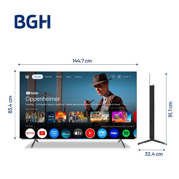Disfrutá del mejor entretenimiento con el Smart TV OLED 4K BGH con Google TV Máxima calidad de imagen y sonido Este Smart TV BGH con pantalla OLED 4K Ultra HD y tasa de refresco de 120Hz te brinda imágenes nítidas, colores vibrantes y negros profundos. Compatible con Dolby Vision, HDR10 y HLG, ofrec...