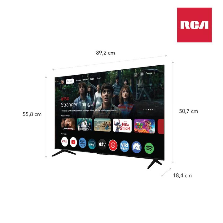 Smart TV RCA 40 R40GL100: Inteligencia Google TV en Full HDRenová tu forma de ver televisión con el Smart TV RCA de 40 pulgadas. Este modelo combina una resolución Full HD con el ecosistema Google TV, que organiza tus aplicaciones y películas favoritas en una interfaz fluida y personalizada. Es el e...