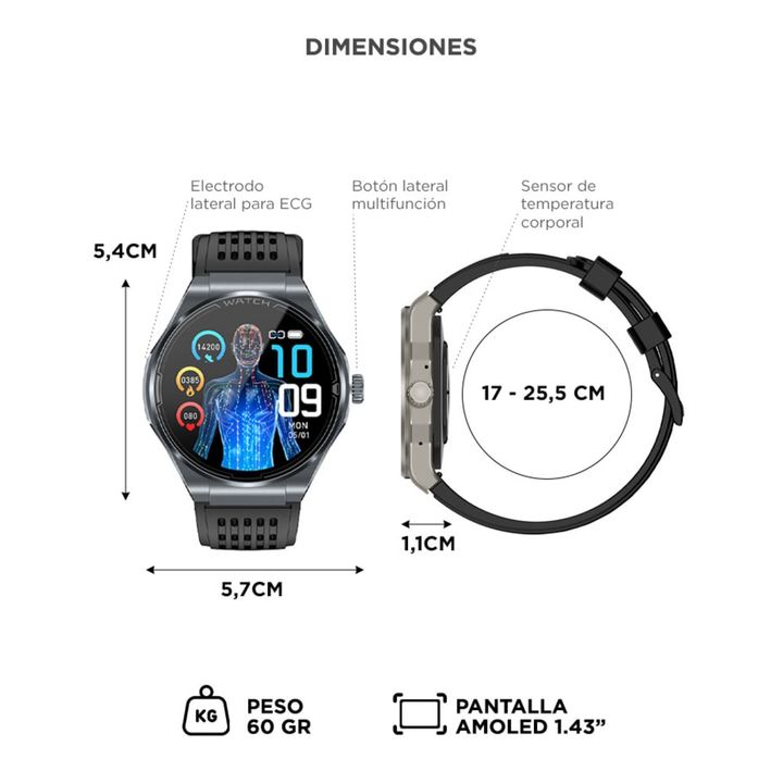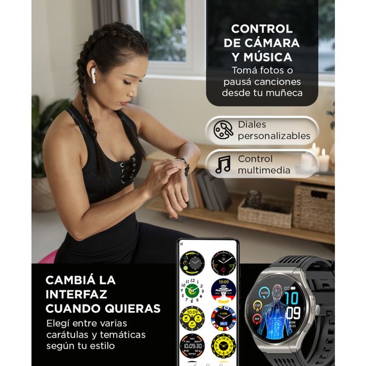 Monitoreo de salud completo: Medí ECG, temperatura, oxígeno en sangre y presión arterial desde tu muñeca. Datos sincronizables con app. Conectividad BT con llamadas: Recibí y realizá llamadas, consultá contactos y escuchá música sin sacar el celular del bolsillo. Ideal para entrenamientos y deporte:...