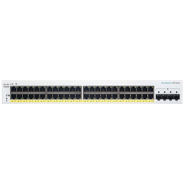 Switch Cisco CBS220 48G POE 4X1G SFP CISCO Detalles Especificaciones Técnicas - Acl:Límite de caída o velocidad basado en MAC de origen y destino, ID de VLAN o dirección IP, protocolo, puerto, precedencia de punto de código de servicios diferenciados (DSCP)/IP, puertos de origen y destino del Protoc...