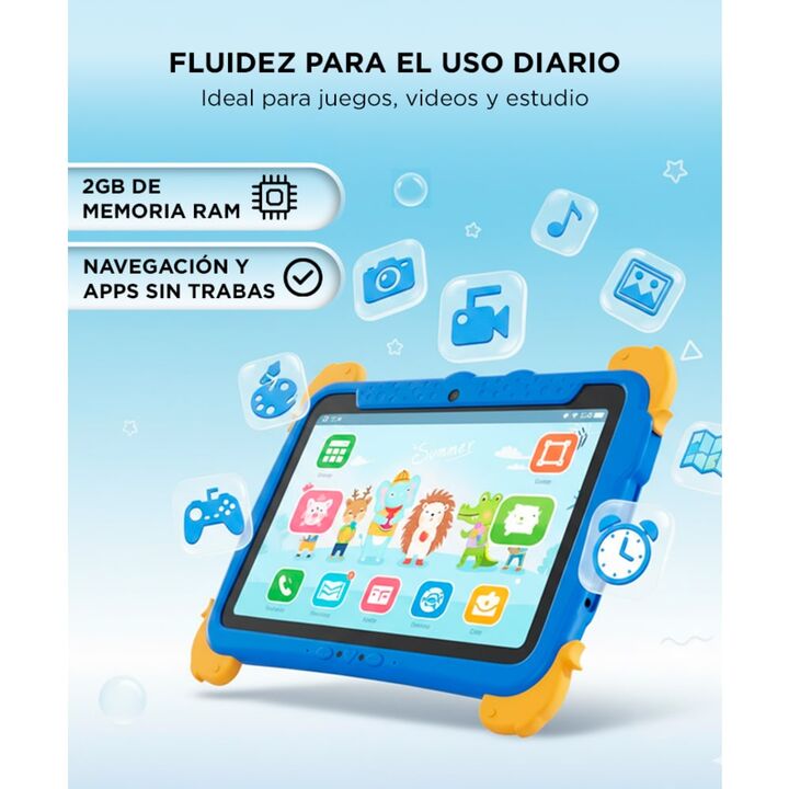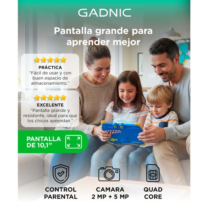 La Tablet Gadnic incorpora una pantalla de 10,1 pulgadas que facilita la visualización de contenidos educativos, videos y juegos. Su tamaño permite una experiencia más confortable para estudiar y entretenerse, reduciendo la fatiga vis...