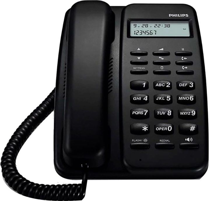 TELEFONO CON CABLE PHILIPS CRD150B77 -Telefono con cable -Pantalla de 66cm -Identificador de llamadas -Manos libres -Control de volumen -Modelo CRD150B77 -Garantia fabricante 12 meses -Pais de origen China