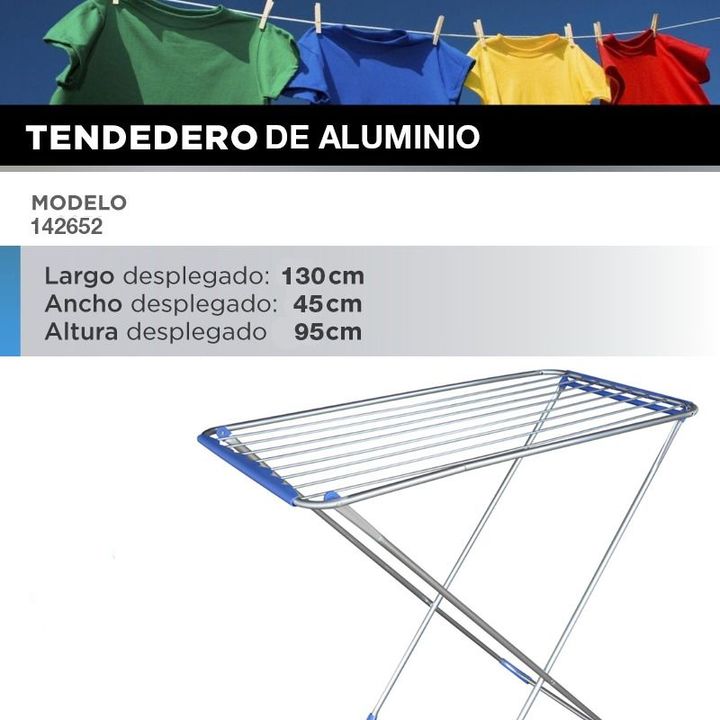 HOGAR ACTUAL TENDER DE ALUMINIO SIN ALAS 92.5x55x80 SKU: 142952 El Tendedero Tender Aluminio Plegable Pie de la marca Hogar Actual es la solución ideal para quienes buscan funcionalidad y eficiencia en el secado de la ropa. Con un diseño compacto y ligero, este tendedero se adapta perfectamente a cu...
