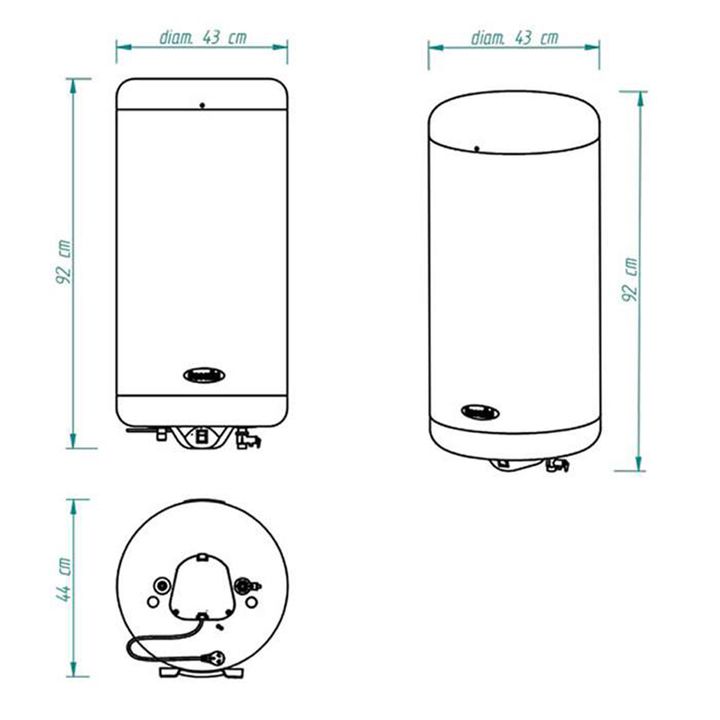 TERMOTANQUE ELÉCTRICO ESCORIAL 90L - EL-90 - Medidas: Diámetro 42,5cm. Altura 92cm. - Interruptor Térmico de corte. - Aislación en espuma de poliuretano expandido. Características: - Potencia: 1500 Watt. - Tensión: 230V. - Peso vacío: 28kg. - Aislación en espuma de poliuretano expandido. - Interrupt...