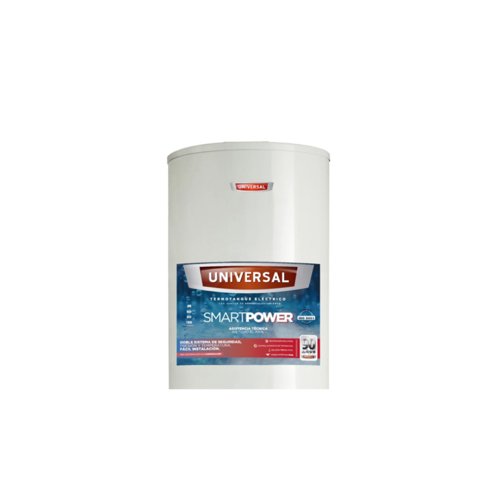 Termotanque Eléctrico Universal 60 Lts Blanco – Línea Smart Power Descripción El Termotanque Universal de 60 litros ofrece un rendimiento eficiente y seguro para proporcionar agua caliente en todo momento. Está fabricado con un tanque de acero enlozado extravitrificado y cuenta con una barra anticor...