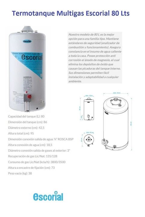 Descripcion : Te presentamos este nuevo producto de ESCORIAL. Este articulo forma parte de la exclusiva linea de TERMOTANQUES elaborado por la prestigiosa marca. La calidad de sus componentes y los detalles de terminacion lo distinguen de la competencia. Este excelente producto cuenta con garantia o...
