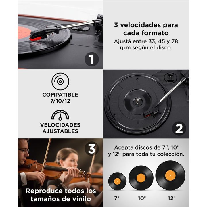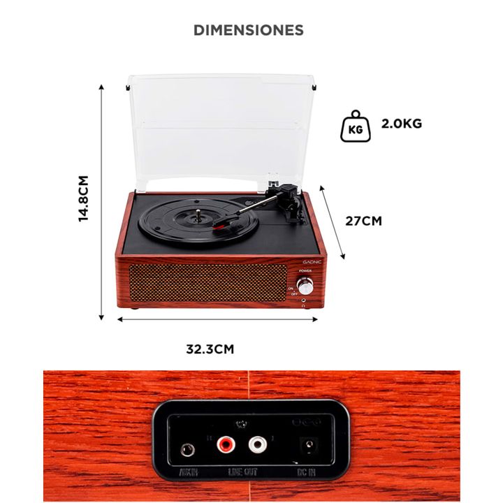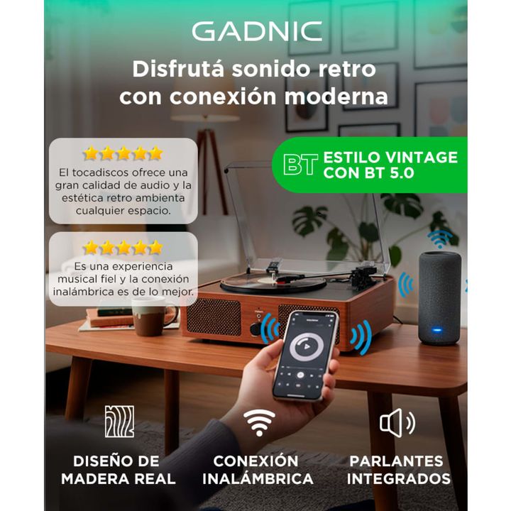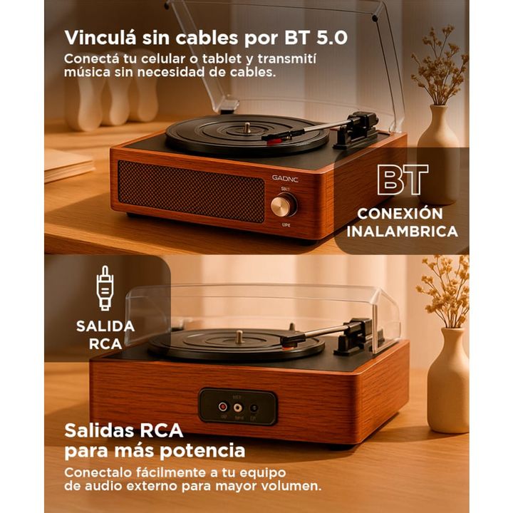 El tocadiscos Gadnic combina lo clásico en su diseño con lo moderno en sus funciones, ideal para los amantes de la música. Incluye tecnología Bluetooth incorporada para transmitir música de forma inalámbrica desde cualquier dispositivo habilitado, al mismo tiempo podes concentrarte escuchando tu mus...