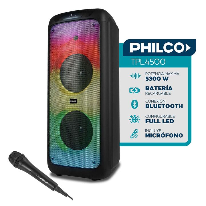 Torre De Sonido Philco TPL4500 5300W Full LED: ¡Potencia Extrema e Iluminación de Fiesta!La Torre de Sonido Portátil Philco TPL4500 es un sistema de audio diseñado para ofrecer una experiencia inmersiva y de alta potencia. Con una impresionante potencia de 5300W PMPO (Potencia Pico Musical de Salida...
