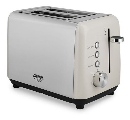 Tostadora Atma 94TOAT21VCP Vintage Crema • Cuerpo de Acero Inoxidable • 7 niveles de tostado • 2 Ranuras extra anchas para bagels y Muffins • 3 funciones cancelar, descongelar, recalentar. • Funcion antiatascos y Guia de autocentrado La presente publicación está destinada únicamente a consumidores f...