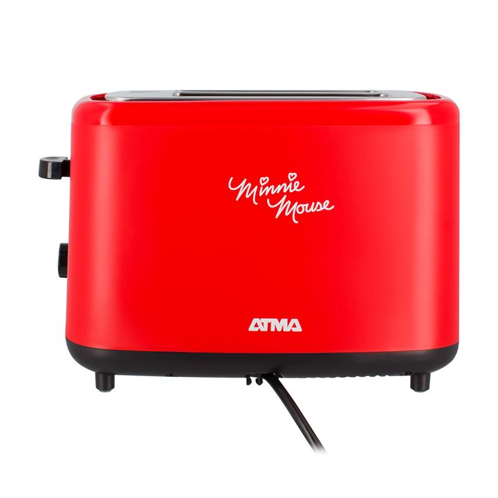 Tostadora ATMA Disney Minnie Color Roja TOAT39DP Caracteristicas: - Expulsión automática de tostadas, función anti-atascos y guía de autocentrado - Funciones: descongelar, calentar y cancelar - Base con pies de goma antideslizante - Espacio inferior guardacable - Fácil de limpiar - Tostadas Customiz...