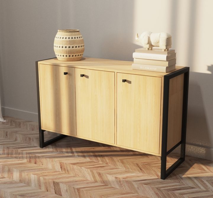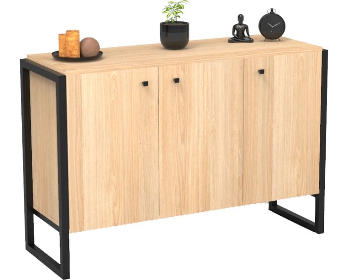 VAJILLERO STEEL DST11 DST11RN ROBLE NEBRASKA NATURAL DELOS -Vajillero buffet 120 -3 puertas + estantes -Estructura de hierro negro mate de 1,32 -Cuadro de 3 x 3 cm -Melamina de 15 mm -Medidas (An x Al x Prof) 120 x 80 x 42cm -Color ROBLE NEBRASKA NATURAL -Modelo DST11 -Garantia fabrica 6 meses -Orig...