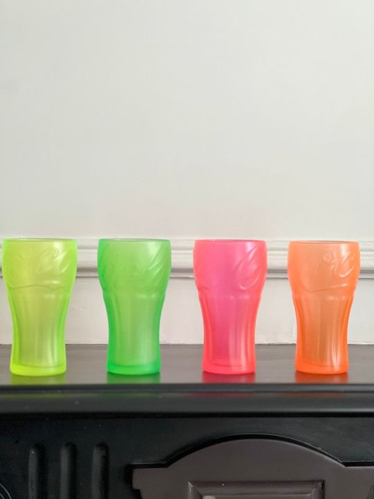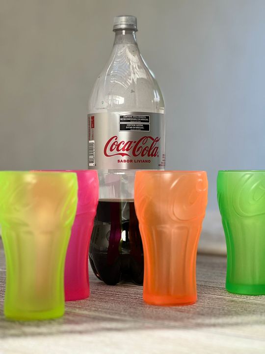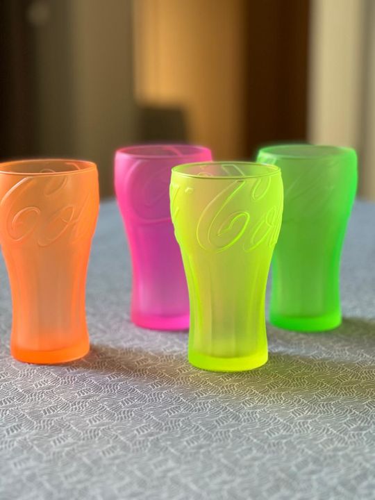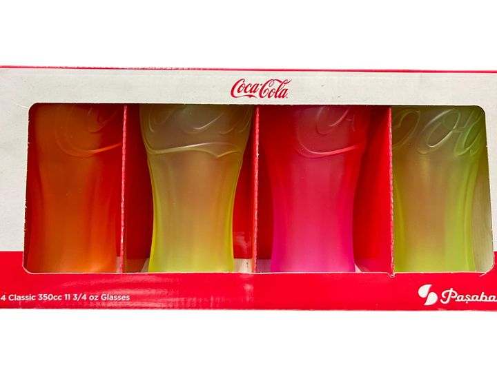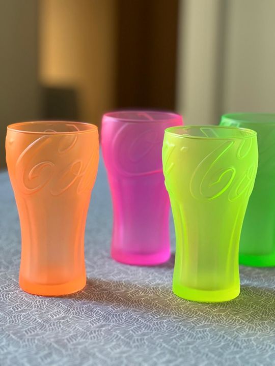 Vaso de Vidrio Coca Cola Coctel , Gaseosa, Agua , Tragos , etc Capacidad : 350 ml Medidas: Alto: 14 cm Diámetro de boca: 7,5 cm Diámetro de base: 5,5 cm Set x 8 vasos Útil para todo tipo de bebidas, tragos, aperitivos, etc. Marca : PASABAHCE Origen : Turquia