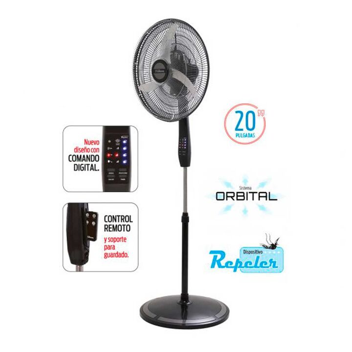 Ventilador de Pie Orbital con Repeler Comando Digital Control Remoto + Timer programable hasta 7:30hs. Barral extensible con traba de fácil regulación.