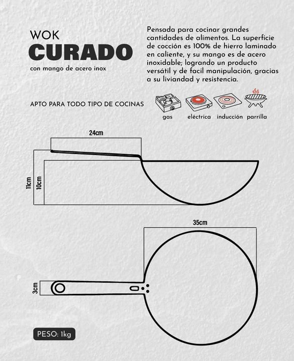 Nueva wokera CURADA! La nueva wokera curada esta pensada para cocinar grandes cantidades de alimentos. La superficie de coccion es 100% de hierro laminado en caliente y su mango es de acero inoxidable; logrando un producto versatil y de facil manipulacion gracias a su liviandad y resistencia. Y lo m...