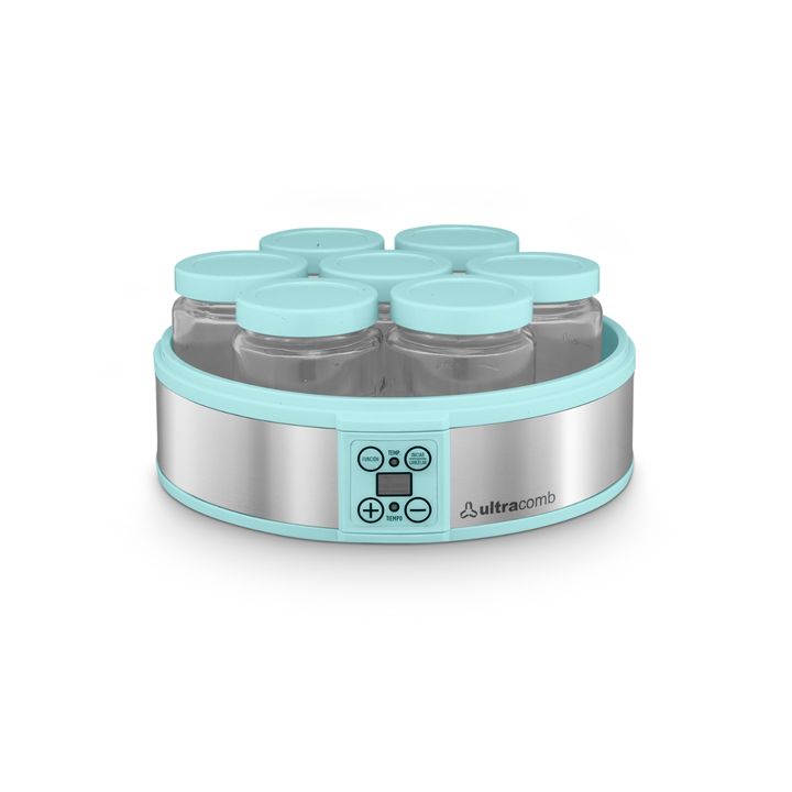 Disfrutá el sabor de un yogur casero, más saludable y libre de conservantes. Prpará fácilmente hasta 1,2 litros de yogurt en una sola tanda. Poné los 7 frascos de vidrio con tapa roscada en la yogurtera y seleccioná el tiempo para empezar la producción. Cuenta con una pantalla LED y controles táctil...